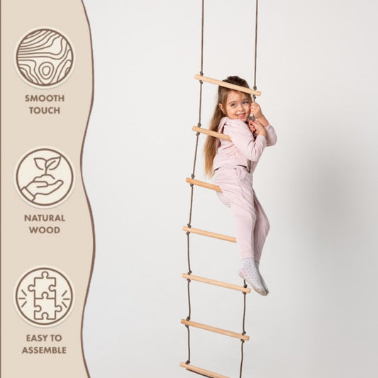 3-in-1 Swings Set: Rope Ladder + Gymnastic Rings + Disc Rope Swing