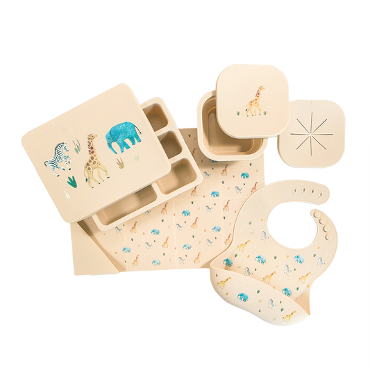 Silicone Mealtime Bundle Safari Warm Cream