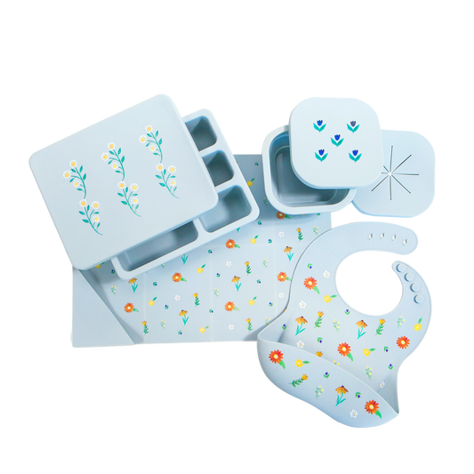 Silicone Mealtime Bundle Wildflower Chambray Blue