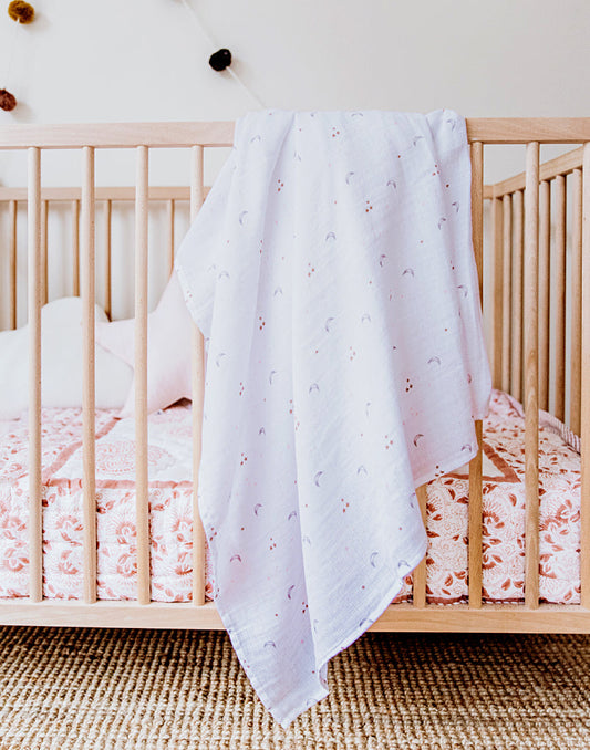 Waterproof Cotton Crib Sheet - Muslin Hearts